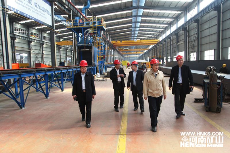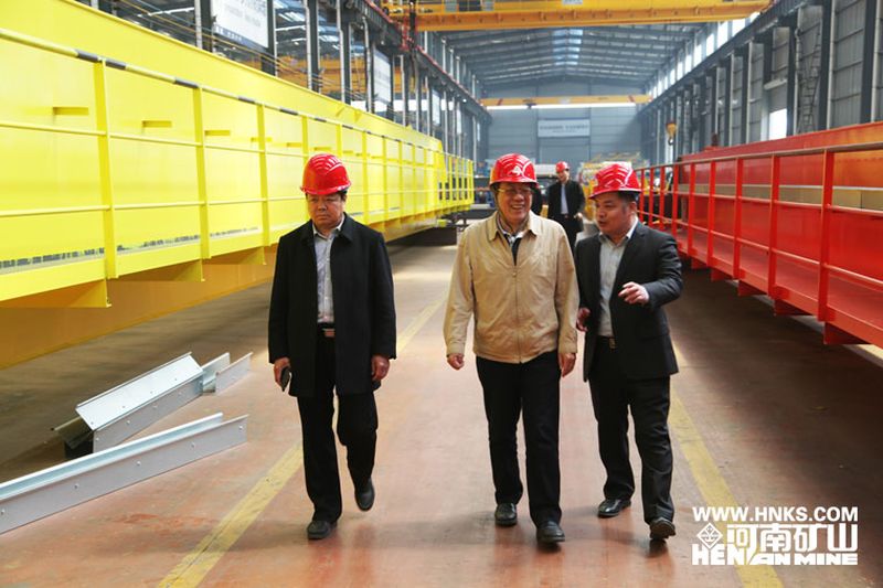 李鏡一行饒有興趣的參觀了河南礦山智能機加工車間、端梁焊接機器手、車輪鍛打流水線及新型起重機柔性生產線。對河南礦山在轉型升級、創新研發方面做出的成績給予了高度贊揚,并勉勵河南礦山要抓住機遇,增強市場競爭意識,進一步提升產品質量,加快產業升級、產品更新換代的步伐。