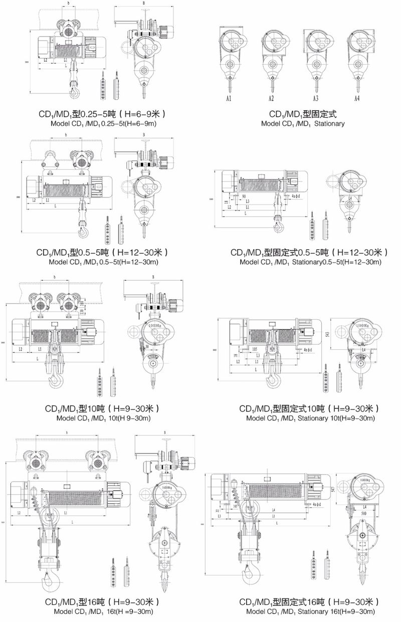 CD1型電動葫蘆的起升速度為常速,可以滿足一般使用要求;MD1型電動葫蘆具有兩種起升速度——常速和慢速。慢速工作時,可以滿足精密裝卸,砂箱合模,機床檢修等精細作業的要求。所以,MD1型電動葫蘆的使用范圍比CD1型電動葫蘆更為廣泛。