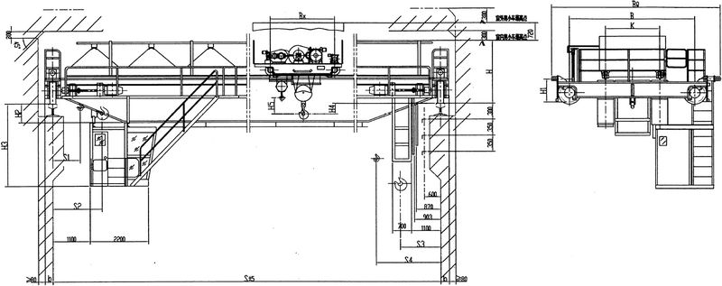 QDY吊鉤橋式鑄造起重機主要用于吊運熔融金屬的冶金、鑄造等場所,整機工作級別為A7,在主梁底部加設隔熱層裝置。起重機裝配與試驗符合國家質量監督檢驗檢疫總局所發的質檢辦特[2007]375號文件。其它吊運熔融的非金屬物料和吊運熾熱固態金屬的場所也可參照選用。(注:以下圖中H0為大車緩沖器增加的高度。H0≤250)